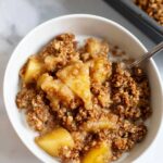 A wholesome and delicious Healthy Breakfast Apple Crumble made with sautéed sweet apples spiced with cinnamon and topped with a crunchy, nutty oat and pecan crumble. This comforting dish is perfect for breakfast or dessert and can be enjoyed with milk, yogurt, or ice cream.