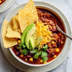 I love topping this chili with shredded cheese, creamy avocado slices, crunchy tortilla chips, fresh cilantro, and a dollop of sour cream. These garnishes add layers of flavor and texture that elevate the dish from simple to spectacular. Experiment to find your favorite combo—your guests will be impressed!