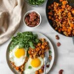 This hash pairs beautifully with a simple side salad tossed with lemon vinaigrette or roasted Brussels sprouts for a green veggie boost. And if you’re serving it for breakfast or brunch, crispy bacon or a side of sautéed greens make great accompaniments.
