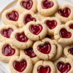 Delight in these charming Thumbprint Heart Cookies, perfect for gifting or sharing with loved ones. Soft and buttery cookie dough is shaped into adorable heart indents filled with your choice of sweet jam, combining classic flavors with a lovely presentation. This recipe offers a simple method that accommodates both traditional and vegan diets while producing about 24 delicious cookies.