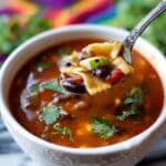 I reheat leftover soup gently on the stove over low to medium heat, stirring occasionally. If it’s too thick, add a splash of water or chicken stock to loosen it up. Always add your tortilla strips and fresh toppings just before serving to keep them crisp and flavorful.