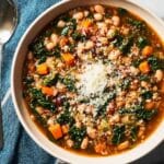 You can easily skip the ground turkey and use extra chickpeas, or add hearty vegetables like sweet potatoes or mushrooms to keep it filling. Swap chicken broth for vegetable broth and skip the Parmesan or use a vegan substitute to keep it vegan-friendly.