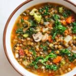 A warm and comforting Lentil Vegetable Soup packed with nutritious vegetables and plant-based protein. This easy-to-make recipe combines soaked lentils with kale, broccoli, cabbage, and a flavorful blend of garlic, ginger, and spices. Perfect for a nourishing meal on cold or rainy days, it’s rich in fiber and vitamins, and designed for a wholesome, satisfying experience.