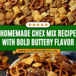 This Bold and Buttery Homemade Chex Mix is a savory and crunchy snack perfect for any occasion. Featuring a blend of Corn, Wheat, and Rice Chex cereals combined with mini pretzels, rye bagel chips, and optional mixed nuts, this recipe is coated in a rich buttery sauce seasoned with Worcestershire sauce, garlic, onion, and Lawry’s seasoned salt. Baked to golden brown perfection, it delivers an irresistible flavor and satisfying crunch.
