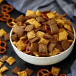 This Bold and Buttery Homemade Chex Mix is a savory and crunchy snack perfect for any occasion. Featuring a blend of Corn, Wheat, and Rice Chex cereals combined with mini pretzels, rye bagel chips, and optional mixed nuts, this recipe is coated in a rich buttery sauce seasoned with Worcestershire sauce, garlic, onion, and Lawry’s seasoned salt. Baked to golden brown perfection, it delivers an irresistible flavor and satisfying crunch.