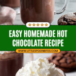 This Homemade Hot Chocolate recipe is a rich and creamy delight perfect for cozying up on chilly days. Made with whole milk, unsweetened cocoa powder, and bittersweet chocolate, it delivers a deeply chocolatey flavor complemented by pure vanilla extract. Topped with homemade whipped cream, this classic drink is easy to prepare on the stovetop and can be customized with various milk and chocolate options to suit dietary needs and preferences.