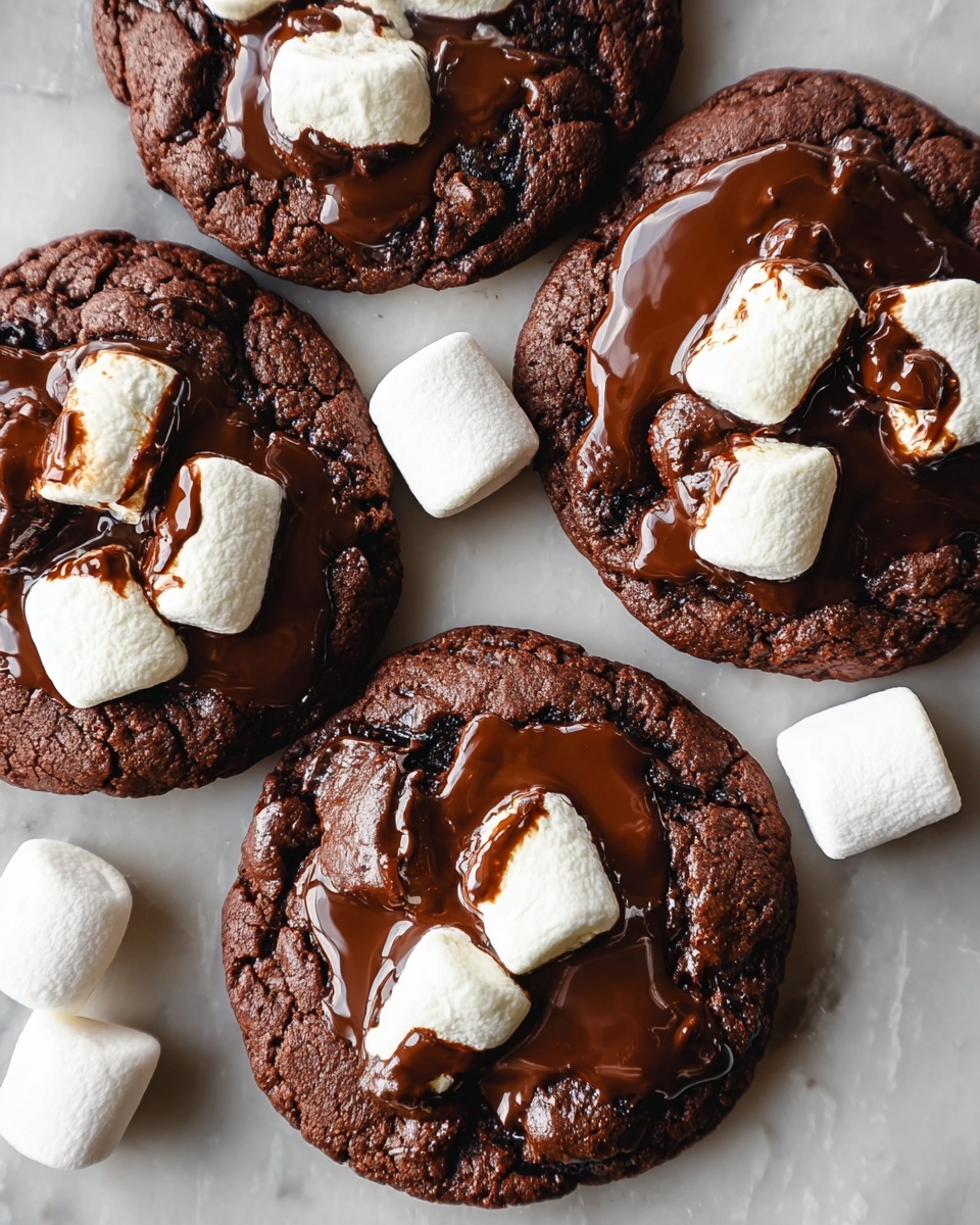 Delight in these rich and chewy Hot Cocoa Cookies featuring a luscious chocolate cookie base topped with gooey marshmallows and a decadent drizzle of melted semi-sweet chocolate. Perfectly balanced with optional peppermint accents, these cookies bring the comforting flavors of hot cocoa into a handheld treat.