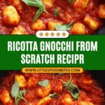 Learn how to make delicate and fluffy ricotta gnocchi or gnudi from scratch with this easy step-by-step recipe. These tender Italian dumplings are made with whole sheep’s milk ricotta, Parmesan cheese, egg, and flour, then boiled to perfection and served with a rich homemade marinara sauce. Perfect for a comforting meal that’s lighter than traditional potato gnocchi.