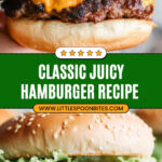 This classic hamburger recipe features juicy ground chuck patties seasoned with a flavorful spice blend, grilled to perfection and topped with melted American cheese. Served on toasted buns with fresh lettuce, tomato, onions, and pickles, it offers a delicious and satisfying meal perfect for any occasion.