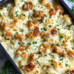 A rich and creamy Keto Chicken Alfredo Casserole featuring tender chicken breast, steamed cauliflower, and a luscious homemade keto Alfredo sauce, all baked to perfection with melted mozzarella cheese. This low-carb, satisfying dish is perfect for a comforting dinner while staying true to keto dietary goals.