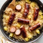 This hearty Kielbasa and Sauerkraut recipe features smoky kielbasa sausage seared to perfection and combined with tender potatoes and tangy sauerkraut. Rinsing the sauerkraut softens its sourness, creating a perfectly balanced dish that’s warm, comforting, and full of rich flavors. Ideal for a quick weeknight dinner or a satisfying meal anytime.