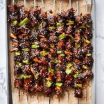 These Saucy Korean BBQ Beef Skewers are a flavorful and easy-to-make dish featuring tender tri-tip or sirloin steak tips marinated in a savory, sweet, and spicy Korean-inspired sauce. Paired with fresh scallions and mushrooms, these skewers are perfect for grilling on a weeknight or for an impressive weekend barbecue treat.
