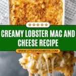 - This Lobster Mac and Cheese recipe features a creamy decadent sauce made with four cheeses and tender chunks of lobster baked together with pasta to gooey perfection.