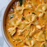 Marry Me Chicken Soup is a rich and creamy tomato-based soup featuring tender shredded chicken, sun-dried tomatoes, and bowtie pasta. Infused with Italian herbs and a blend of cream cheese and heavy cream, this hearty soup offers comforting flavors balanced with a hint of spice from red pepper flakes. Perfect for a cozy meal that feels indulgent yet wholesome.