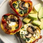 These Mushroom Spinach Bacon Egg Cups are a delicious and protein-packed breakfast option featuring crispy bacon wrapped around muffin cups filled with sautéed mushrooms, fresh spinach, eggs, almond milk, and crumbled feta cheese. Baked to perfection, these savory egg cups are an easy make-ahead meal that’s perfect for busy mornings or brunch gatherings.