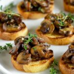 - Assemble Crostini: Remove the thyme sprigs from the pan. Spoon a couple of tablespoons of the mushroom topping onto each crostini. Garnish with additional fresh thyme leaves and a drizzle of olive oil before serving.