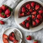 This oil-free vegan chocolate cake features a rich, chocolatey flavor with a moist texture, topped with fresh strawberries. Made with wholesome ingredients like oat flour and coconut sugar, it is naturally gluten-free when using certified gluten-free oat flour and free from dairy and oils. Perfect for a healthy dessert option that’s easy to prepare and satisfies chocolate cravings guilt-free.