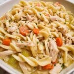 This Old Fashioned Turkey and Noodles recipe is a hearty, comforting dish made with tender cooked turkey, fresh vegetables, and creamy egg noodles simmered in a flavorful chicken broth. Perfect for using up leftover turkey, it delivers a classic, homemade taste that warms the soul with every bite.