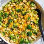This One Pot Chicken Broccoli Rice Casserole is a wholesome, comforting dinner made in a single skillet. Tender boneless skinless chicken breasts are sautéed with garlic and onion, then cooked together with long grain rice, fresh chopped broccoli, and a blend of milk and chicken broth to create a creamy, cheesy casserole. Ready in just 45 minutes, this dish is perfect for weeknights and requires no canned soups or complicated steps.