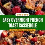 This Overnight French Toast casserole is a delicious and easy-to-make breakfast dish perfect for holiday brunches or weekend mornings. Cubed day-old French bread is soaked overnight in a rich custard made from whole milk, eggs, brown sugar, cinnamon, and a pinch of kosher salt. Topped with a buttery brown sugar streusel and fresh berries, this baked French toast is comforting, sweet, and bursting with flavor.
