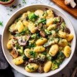 For a special occasion, I’ve served this gnocchi in shallow white bowls and topped each portion with a small pile of microgreens or edible flowers — it adds such an elegant touch. You can also plate the gnocchi on a wooden board surrounded by roasted veggies for a rustic vibe that’s as inviting as it is delicious.