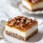 While the cheesecake is baking, chop extra pecan halves and combine them in a small saucepan with brown sugar, heavy cream, butter, cinnamon, and salt. Bring this mixture to a boil over medium heat, stirring constantly, then let it simmer for a couple of minutes until it thickens slightly and becomes glossy. Pour this warm, nutty topping evenly over the baked cheesecake and spread gently with a spatula. This topping is what turns cheesecake bars into a decadent treat you’ll rave about!