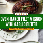 After baking, transfer the filet mignon to a plate and tent loosely with foil for 5 to 7 minutes. This resting period is crucial to redistribute the juices so your steak is tender and juicy all the way through. Finally, I love topping mine with melted herb butter from the pan or a fresh slice of compound butter, sometimes even a drizzle of bearnaise sauce if I’m feeling fancy.