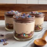 Pour your freshly blended mousse over the cookie base in your jars. Cover and refrigerate for at least a few hours—overnight is best. You’ll find that chilling helps the mousse firm up into that perfect creamy consistency.