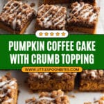 Slicing into 16 pieces, this Pumpkin Coffee Cake with Crumb Topping and Vanilla Glaze Recipe is perfect for gatherings or anytime you need a sweet pick-me-up. Serve with a steaming cup of coffee or tea, and watch everyone’s faces light up.