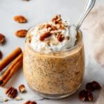 I usually top my pumpkin pie overnight oats with a handful of toasted pecans or walnuts for a nice crunch, plus a sprinkle of cinnamon or extra pumpkin pie spice for that extra punch. Sometimes I drizzle a bit of extra maple syrup or a spoonful of nut butter on top when I want it a bit more decadent. Fresh sliced banana or a few dried cranberries add a lovely fruity contrast too.