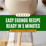 - Homemade eggnog is a creamy, spiked holiday drink that’s quick and easy to prepare, taking just 5 minutes.