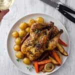 - Rest and Serve: Remove the pheasants from the oven and let them rest for about 10 minutes to allow the juices to redistribute. Serve the roasted pheasant with the caramelized vegetables and garnished with some fresh coriander leaves for a bright finish.