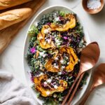 This Roasted Acorn Squash and Kale Salad combines the natural sweetness of roasted acorn squash with hearty kale, shredded carrot, and red cabbage, balanced by a tangy maple vinaigrette and enriched with currants, sunflower seeds, and crumbled feta cheese. It’s a perfect gluten-free salad for fall and winter, offering a delightful contrast of flavors and textures that’s both wholesome and festive enough for holiday meals or easy weeknight dinners.