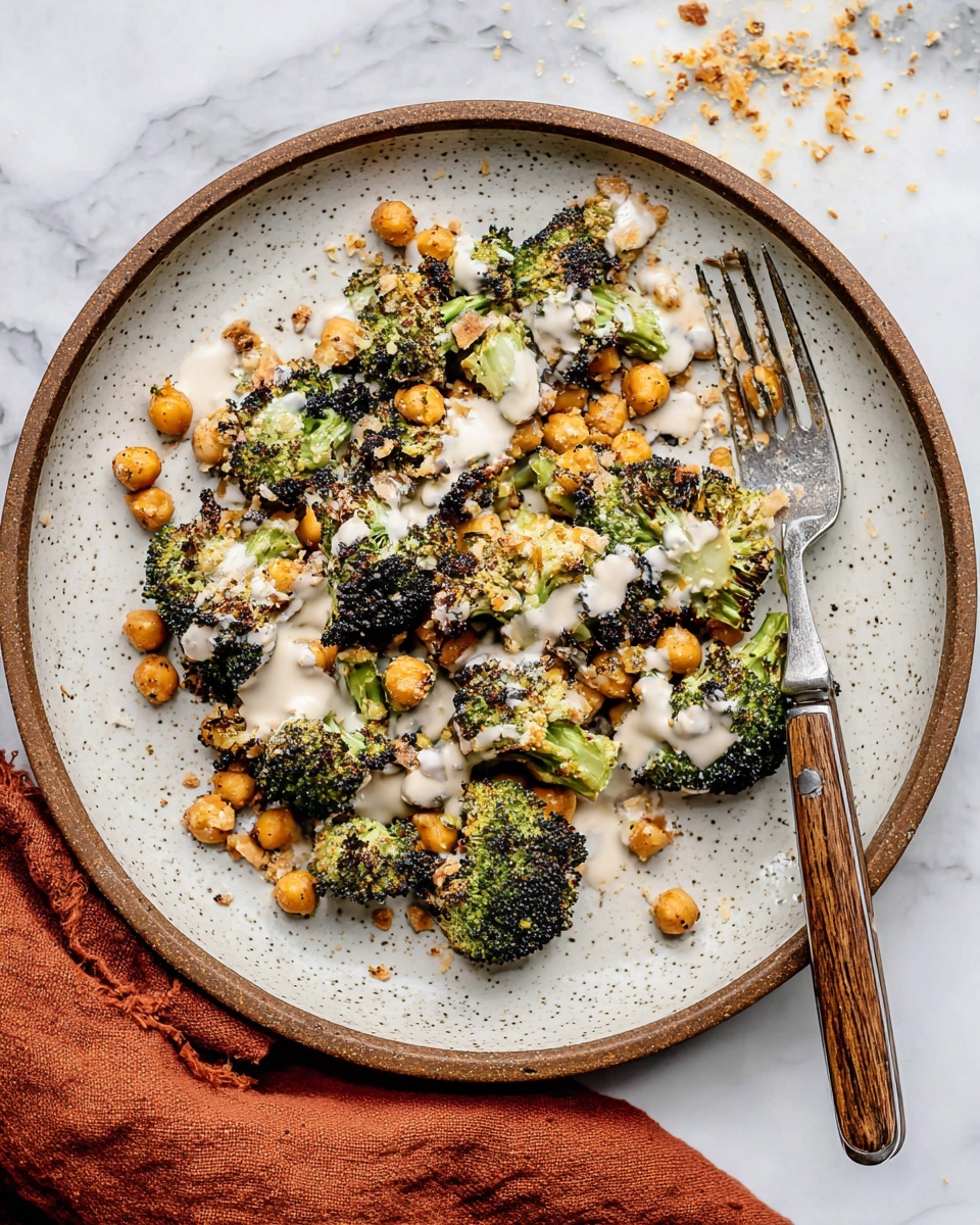 Place the roasted broccoli and chickpeas in a large serving bowl or platter. Sprinkle the toasted garlic panko breadcrumbs on top, drizzle generously with your tahini Caesar dressing, and toss everything until it’s well coated. Finish with an extra sprinkle of fresh Parmesan and a few crushed red pepper flakes for a subtle kick. Serve immediately — the contrast between the warm roasted veggies and the cool, creamy dressing is just *chef’s kiss*. I remember the first time I served this to my friends; they couldn’t stop raving about how fresh and satisfying it tasted.
