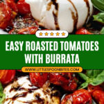 Take the roasted tomatoes out of the oven, and lovingly nestle the burrata cheese right on top. Drizzle generously with your balsamic reduction and scatter fresh basil leaves over everything. Serve immediately alongside slices of French baguette. The warm, roasted tomatoes with creamy burrata and tangy balsamic will have you swooning—you can thank me later!