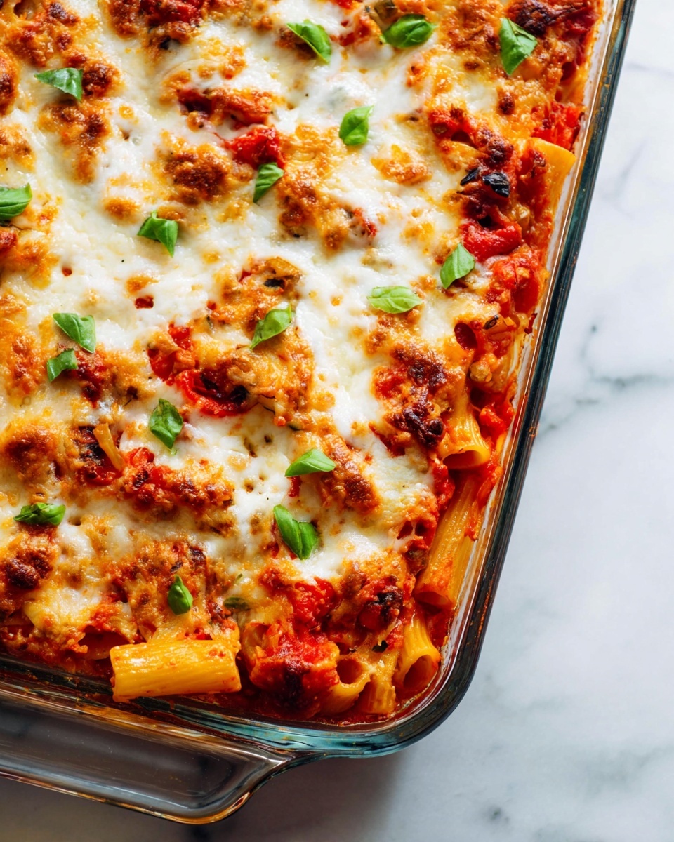 I always sprinkle freshly torn basil leaves on top right before serving—it adds a vibrant, herbal freshness that contrasts perfectly with the rich sauce and cheese. Sometimes, I add a little cracked black pepper or a dusting of grated Parmesan for an extra layer of flavor.