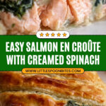 This Salmon en Croûte with Spinach and Puff Pastry Recipe pairs beautifully with lightly roasted baby potatoes or a crisp green salad with citrus vinaigrette. If you want something warm and comforting, steamed green beans tossed with garlic butter are a fantastic match too.