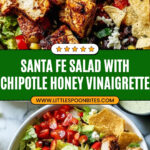 A vibrant and flavorful Santa Fe Salad featuring seasoned grilled chicken, fresh vegetables, quinoa, black beans, and a zesty chipotle honey vinaigrette. This hearty salad combines smoky spices, creamy avocado, and crunchy tortilla chips for a satisfying and healthy meal perfect for lunch or dinner.