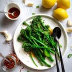 A quick and flavorful recipe for sautéed broccolette with garlic, lemon, and Aleppo chili. This dish features tender broccolette blanched briefly and then sautéed in a vibrant infused olive oil, offering a perfect balance of heat, citrus freshness, and subtle garlic aroma. Ideal as a healthy side dish or light vegan appetizer.
