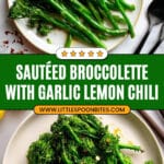 For a dinner party, I like to stack the sautéed broccolette in a small tower on each plate, drizzle the remaining infused oil artistically around it, and finish with a sprinkle of flaked sea salt. It makes a simple side feel just a bit more special.