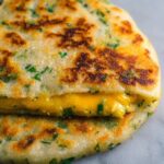 Delicious scallion pancake quesadillas combine the flaky, savory layers of traditional Chinese scallion pancakes with melted cheddar cheese for a crispy, cheesy twist. These handheld delights make a perfect snack or appetizer, featuring a tender dough infused with scallions, fried until golden and filled with gooey cheese for a satisfying fusion treat.
