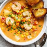 This Shrimp and Chorizo Chowder is a hearty, flavorful soup combining the smoky richness of Spanish chorizo with tender shrimp, tender potatoes, and creamy half and half. Perfectly spiced with smoked paprika and complemented by sweet corn and fresh parsley, it makes a comforting meal served alongside crusty baguette toasts.