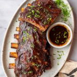 - Serve: Slice the ribs between the bones and serve with additional barbecue sauce or the reduced sauce for dipping.