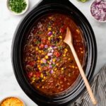 I like to serve this Slow Cooker Taco Soup Recipe with warm cornbread or tortilla chips for sopping up every last spoonful. A fresh green salad with a light lime vinaigrette pairs nicely too, adding some brightness to the meal. Sometimes I even throw in some Mexican rice on the side for extra comfort.