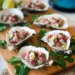 Absolutely! The topping can be mixed and refrigerated a few hours or even a day ahead, which makes hosting so much easier. Just add it to the oysters right before serving to keep everything fresh.