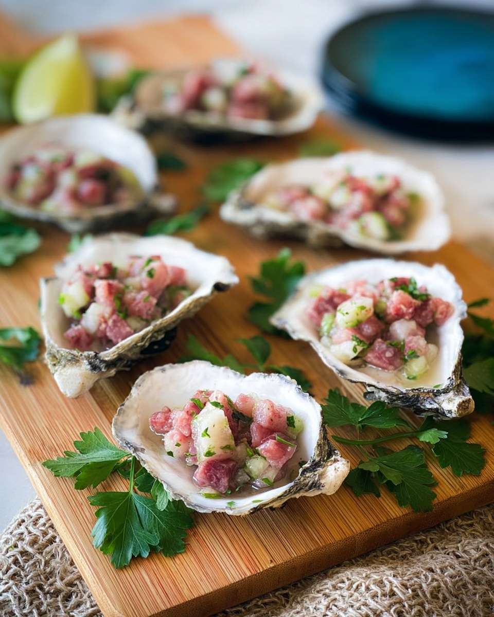 - Serve: Present the oysters immediately with extra lime wedges on the side for guests to add zest if desired. Enjoy chilled for best flavor.