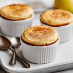 This spiced pear soufflé is a light and airy fall dessert featuring the delicate sweetness of pears combined with warming spices like cinnamon, nutmeg, and allspice. The soufflé has a fluffy texture thanks to whipped egg whites and a smooth pear puree thickened with arrowroot flour. Perfectly baked to a golden top, it’s an elegant and cozy treat for any occasion.
