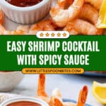 Classic Shrimp Cocktail with a zesty homemade cocktail sauce featuring chili sauce, horseradish, and a hint of Tabasco, served chilled with tender, perfectly cooked shrimp.