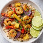 This vibrant and flavorful Jerk Shrimp with Pineapple Bowls recipe combines spicy, smoky jerk-seasoned shrimp with sweet pineapple and fresh vegetables, all baked to perfection and served over your choice of healthy grains. Perfect for a quick and delicious weeknight meal with a tropical twist.