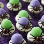 I haven’t frozen fully decorated Spider Bites much because I love how fresh they taste, but you can freeze the un-iced mini cupcakes. Wrap them tightly and freeze for up to 3 months. Thaw completely before frosting and decorating for best results.